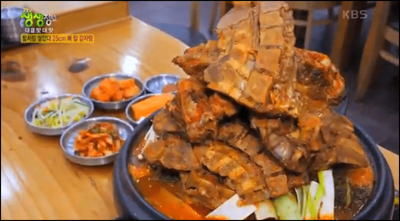 이번 방송에서 또 많은 분들의 마음을 설레게 했던 음식은 바로 해물간장뼈찜입니다. 매운 것을 못 드시는 분들은 감자탕이 매울 수 있는데요. 그런 분들은 해물간장뼈찜을 소개합니다. 해물간장뼈찜도 뼈탑감자탕이 파는 식당과 같은 식당인데요. 어서 빨리 감자탕집이 어디인지 확인해 보세요.