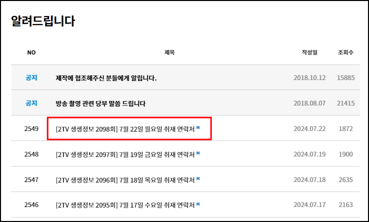 생생정보 다시보기 방법 안내