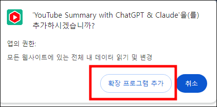 1. YouTube Summary with ChatGPT & Claude를 다운로드하기 위해 크롬 웹스토어 > 확장프로그램에서 YouTube Summary with ChatGPT & Claude를 검색해 크롬에 추가를 누릅니다.