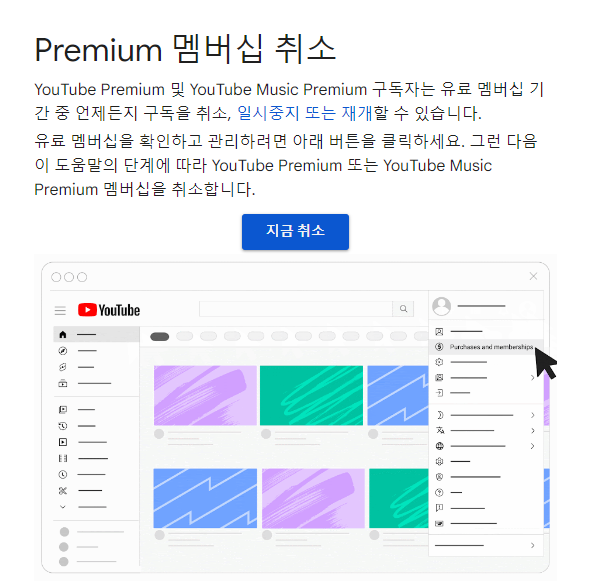유튜브 프리미엄 구독 결제 취소방법