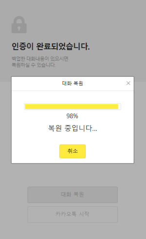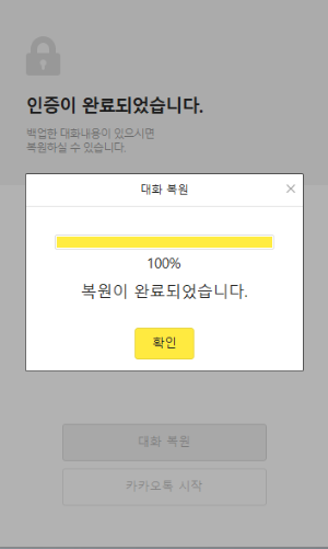 3. 대화복원> 백업시 등록한 비밀번호 입력> 대화복원