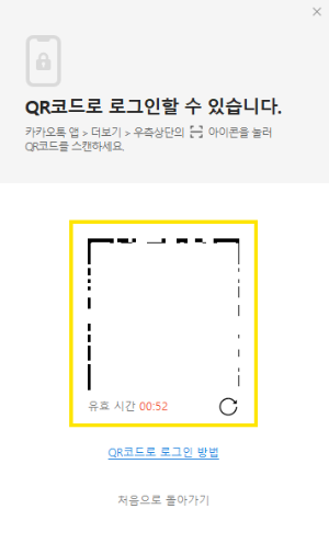 로그인을 하는 방법은 2가지가 있습니다. 이메일 또는 전화번호를 입력 후, 비밀번호를 입력하는 방법이 있습니다. 다른 방법은 QR코드 로그인을 할 수 있습니다. QR코드 로그인을 누르면, 아래처럼 QR코드가 나옵니다.