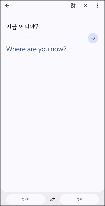 내가 하고 싶은 말을 한국어로 말하거나 키보드로 치시면, 바로 영어로 번역이 되어 어렵지 않게 소통할 수 있습니다. 미리 언어를 다운로드하여놓으시면 오프라인에서도 사용이 가능합니다.