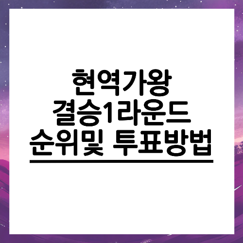 현역가왕 결승전이 진행되는 가운데, 최종결승전 TOP7인에 누가 오를지 화제를 모으고 있는데요. 지난 2월 6일에 방송된 현역가왕 프로그램에서 결과가 어떻게 나왔는지 현역가왕 결승 1라운드 순위를 보시겠습니다.
